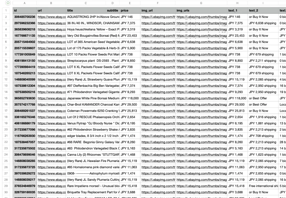 Converti qualsiasi pagina di ricerca, categoria o negozio eBay in una foglio di calcolo strutturato in tre semplici passaggi: