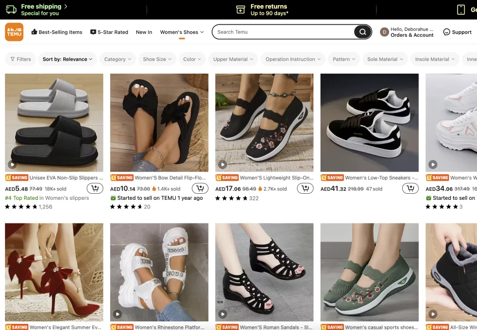 Temu의 임의의 검색 결과, 카테고리 또는 판매자 스토어 페이지로 이동합니다.