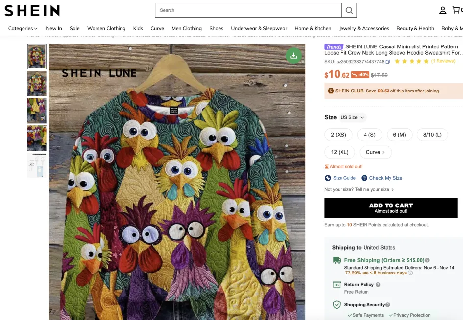 Navigate to any product page on Shein.