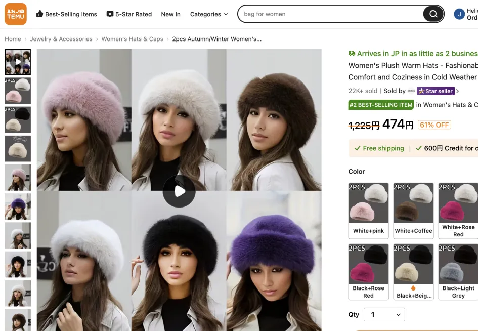 Navigate to any product page on Temu.