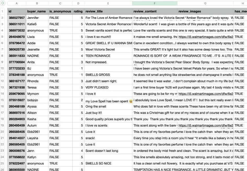 The amount of data this scraper pulls is incredible. We analyze the positive and negative feedback counts to see which review comments are resonating most with shoppers. The data is always clean and easy to import into our systems.